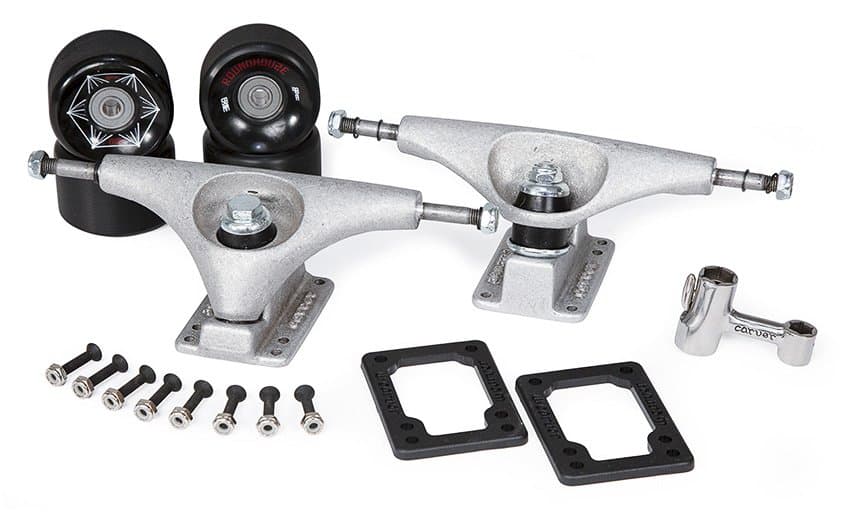 El Carver C5 es un eje para saltar, más truquero y centrado en la ciudad.Está diseñado específicamente para los riders de surfskate que quieren realizar los trucos del skate tradicional sin sacrificar la sensación de deslizamiento de los ejes típicos de surfskate.El Carver C5 sigue teniendo el mismo giro que los ejes anteriores pero con algo más de resistencia.A diferencia de los otros ejes ejes de Carver este es más bajo, corto y estrecho.