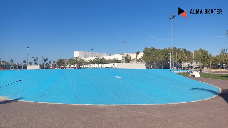 La sombra escasea. Tenlo en cuenta si vas a visitar este skatepark de Junio a Septiembre (incluidos).